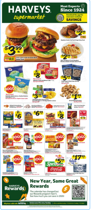 The Harveys Weekly Ad brings you fresh deals and savings every week. You can check the latest flyer to see discounts on meat, produce, pantry items, and household goods. These offers help you plan your shopping and save more on your grocery bill. Browse today’s Harveys ad to find weekly specials, digital coupons, and limited-time promotions near you.